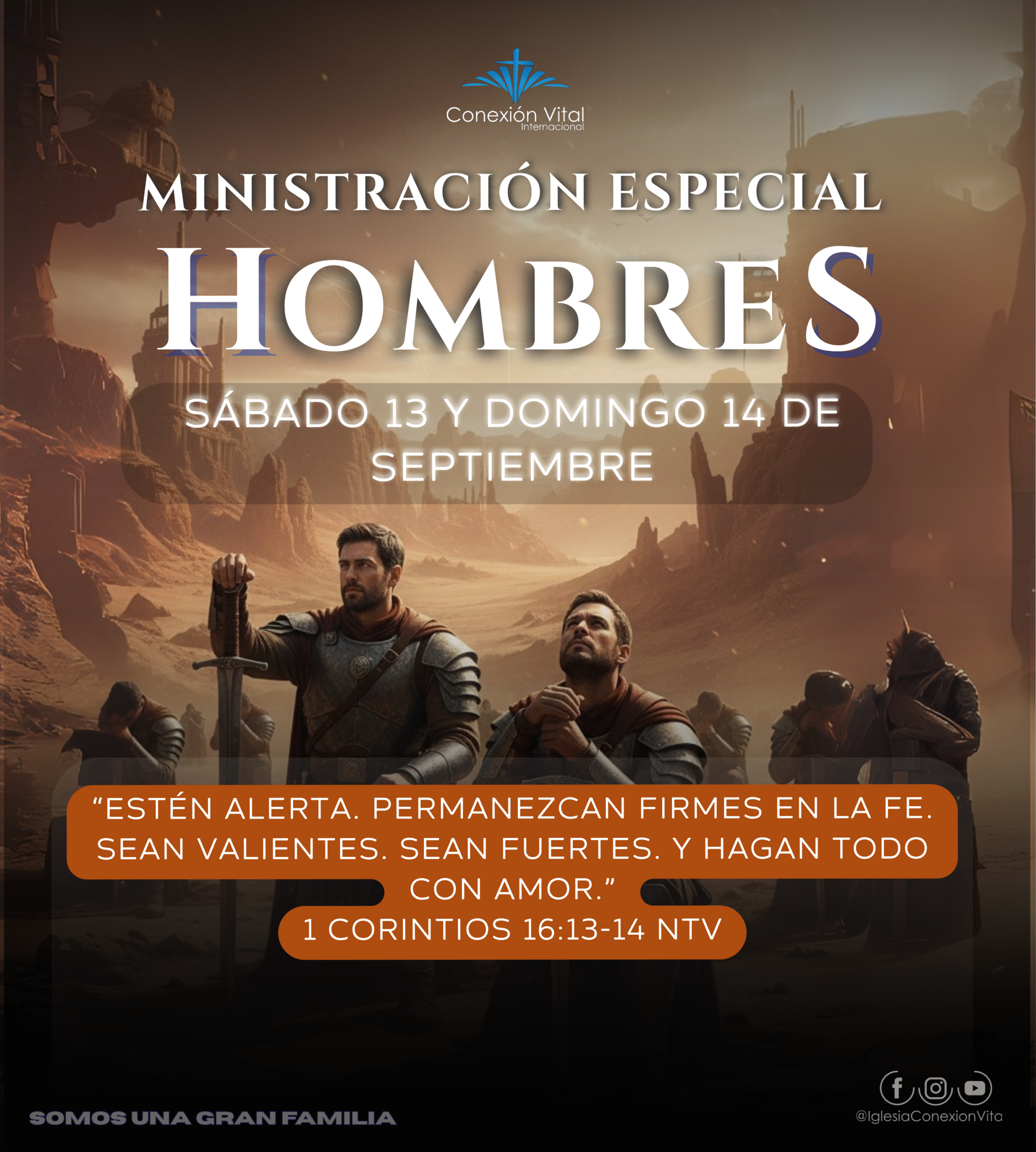 Nuestra misión se centra en cumplir el gran mandamiento de amar a Dios y al prójimo (Marcos 12:29-31), llevar a cabo la gran comisión de hacer discípulos (Mateo 28:19-20), fomentar la madurez espiritual a través de nuestra Escuela Ministerial, y vivir como una gran familia en comunión y oración.